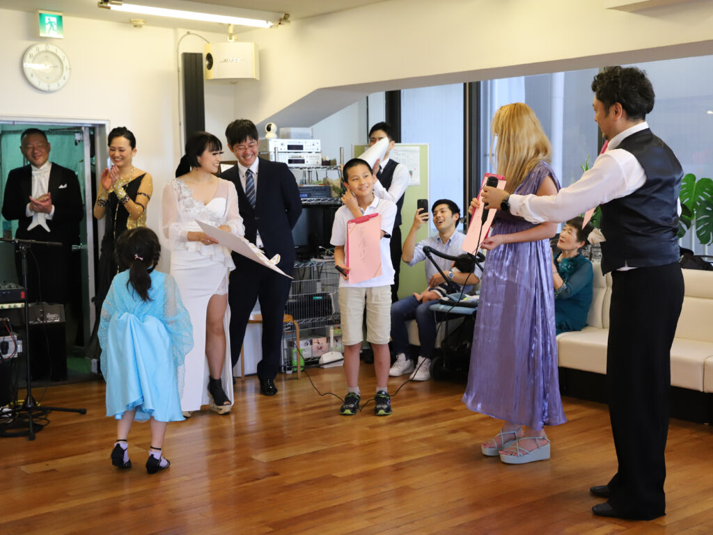 今回は子どもたちも含めて初めてご参加の方、また社交ダンスに触れるのが初めてという方にもご参加いただいたので、ダンス以外のレクリエーションも取り入れてみました。「和」にちなんで「合作俳句」。五七五を1チーム3人で詠むのですが、大人も子どもも混ざって楽しめる企画になりました。